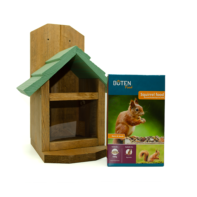 Eekhoorns voeren kan met het eekhoorn voederpakket! Dit pakket bevat een voederhuisje en speciaal voer. Het huisje heeft een venster, waardoor je extra goed kan bekijken de eekhoorn in de tuin smult van lekker eten. Leuk pakket om zelf aan te schaffen of cadeau te doen.